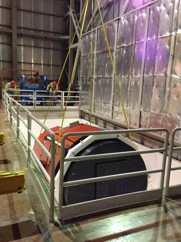 MODS2, which arrived on Mt Graham in October of last year, can be seen on the right on its way up to the telescope floor. Over the coming months, MODS2 will undergo a series of tests, first during day time and eventually on sky for its commissioning.